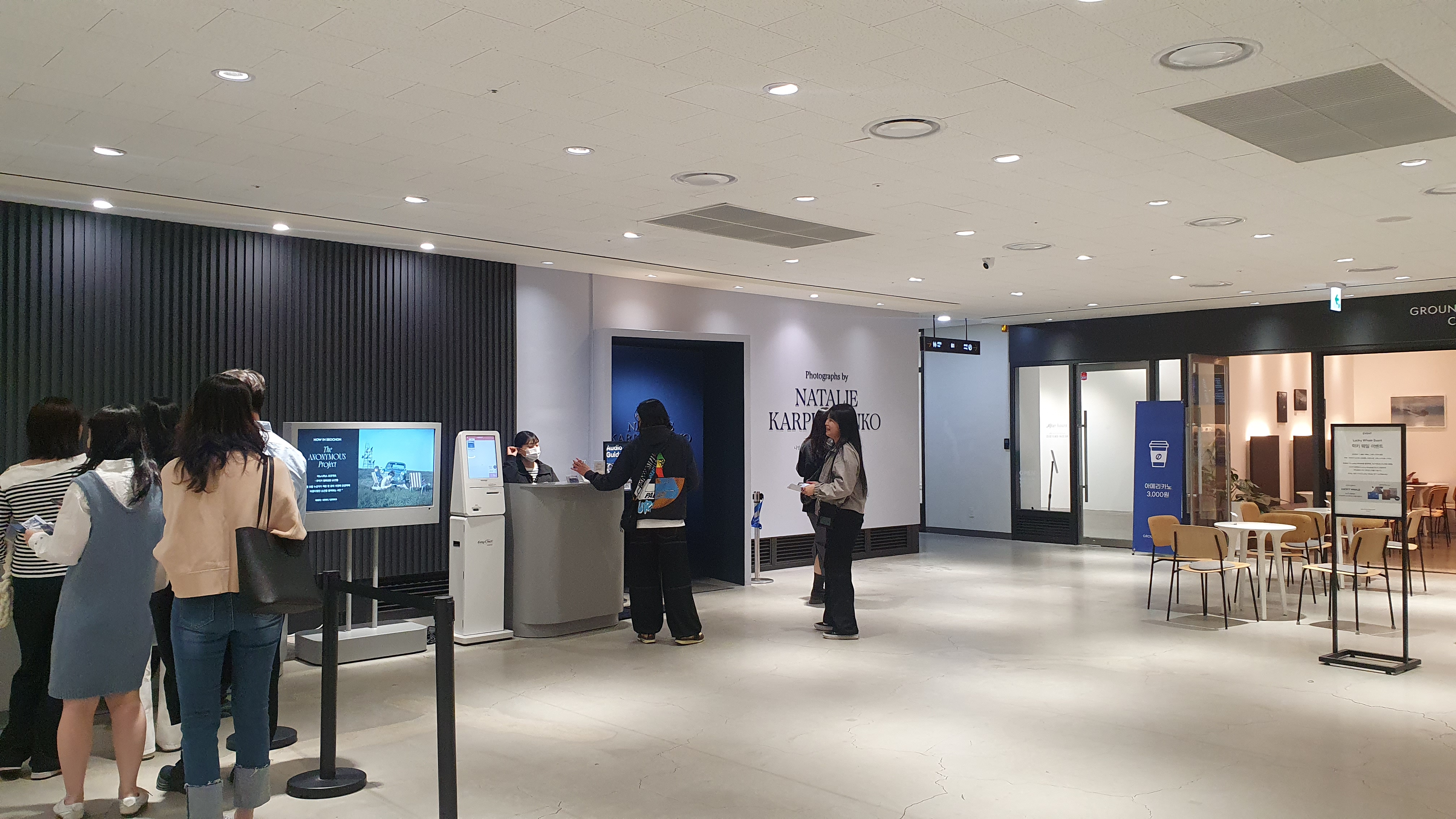 지하로 내려가면 티켓부스가 있고, 예매한 티켓을 보여주면 입장이 바로 가능해요. 토요일 오후 12시경 도착해서 전시를 보았는데, 대기 인원도 없고, 전시실 안도 적정 인원이 있어서 사진전을 보기 쾌적했어요.
