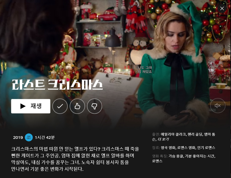 넷플릭스 크리스마스 추천영화_라스트 크리스마스(Last Christmas)