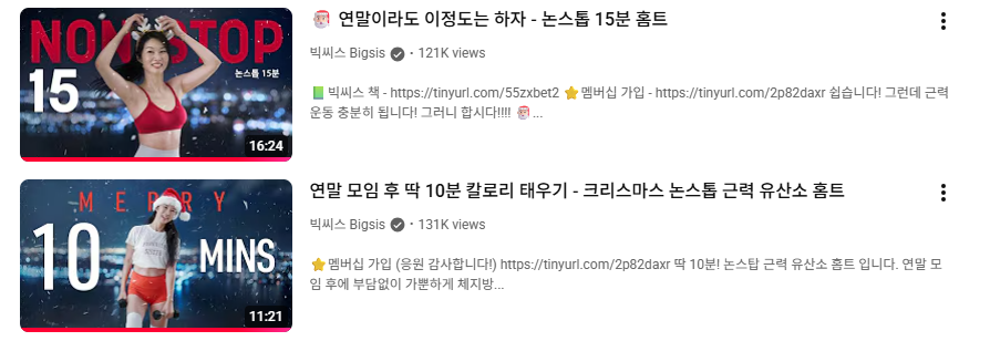 아직 조금 남았지만, 크리스마스 분위기까지 느끼면서 기분 좋게 따라 할 수 있는 운동 영상을 추천해드릴게요.