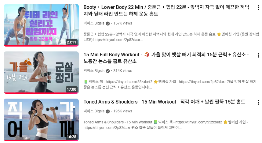 🔸 추천 영상 ① Booty + Lower Body 22 Min (중둔근 + 힘업 22분)