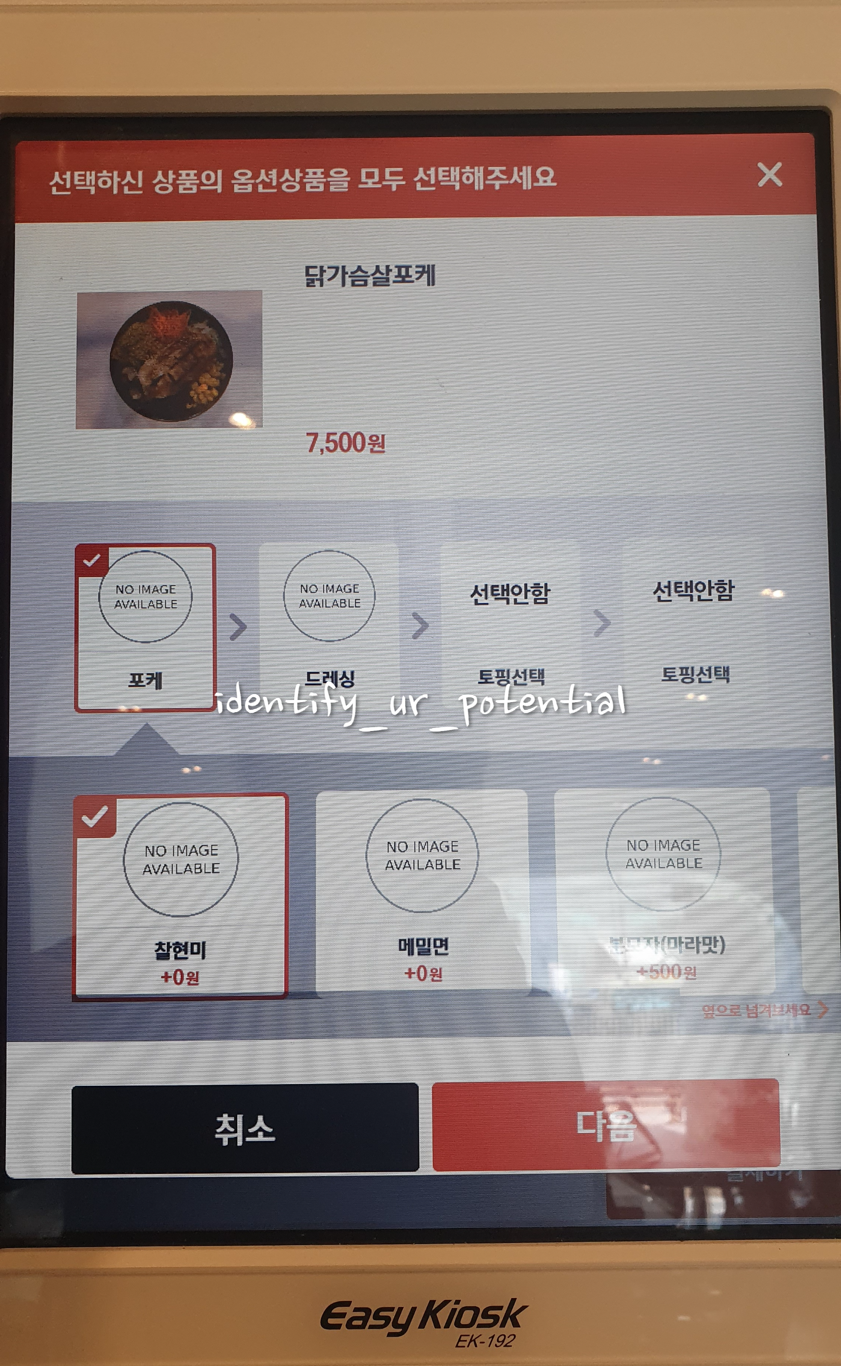 저는 닭가슴살 포케->찰현미 ->스리라차->토핑없음 을 선택해서 먹었답니다.