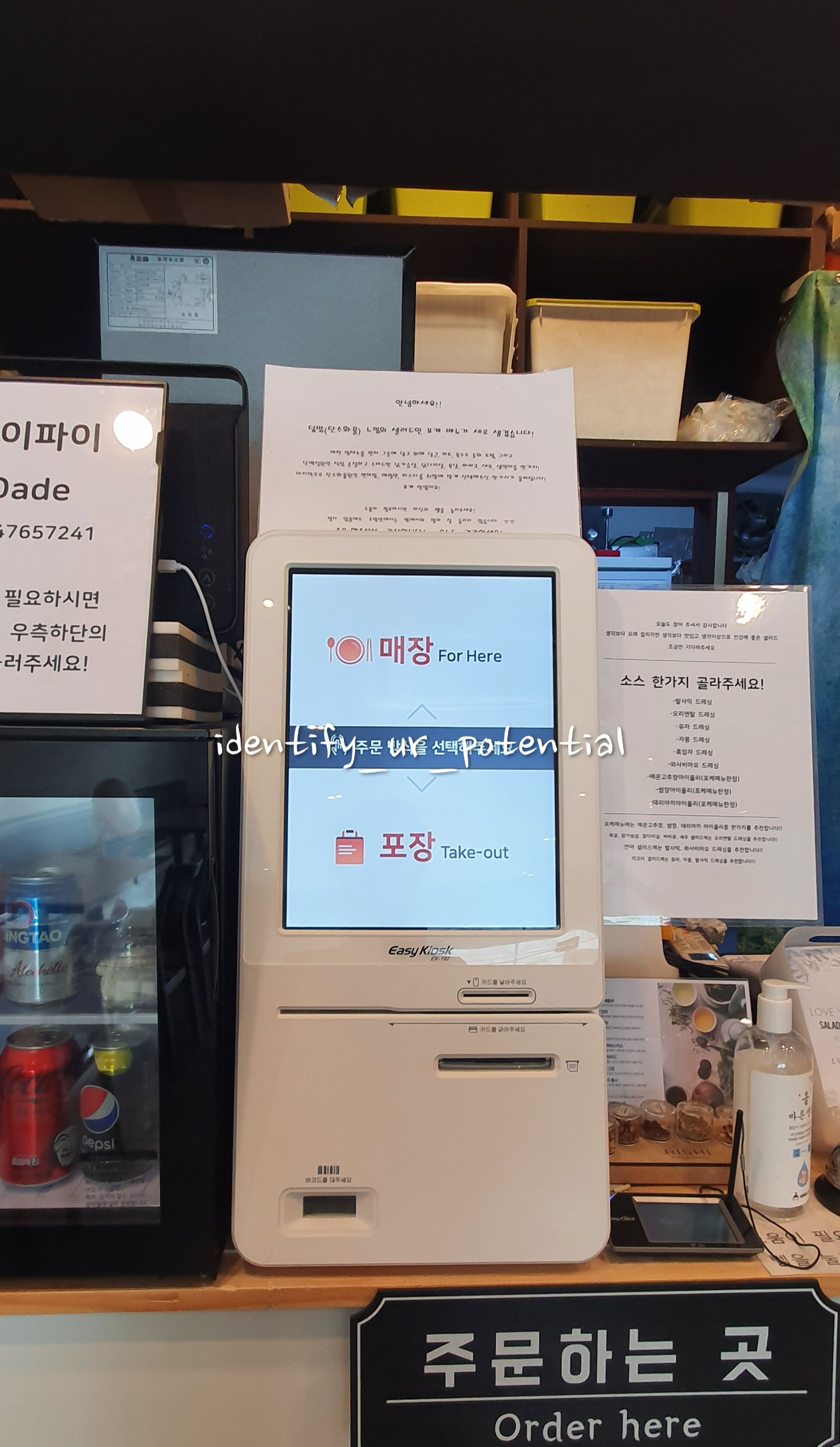 주문은 키오스크를 통해 주문하면 되고, 매장에서 먹을지 포장할지 먼저 선택하게 되어 있어요.