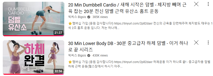 1. 빅씨스 중고급 하체 덤벨 루틴 (30분)